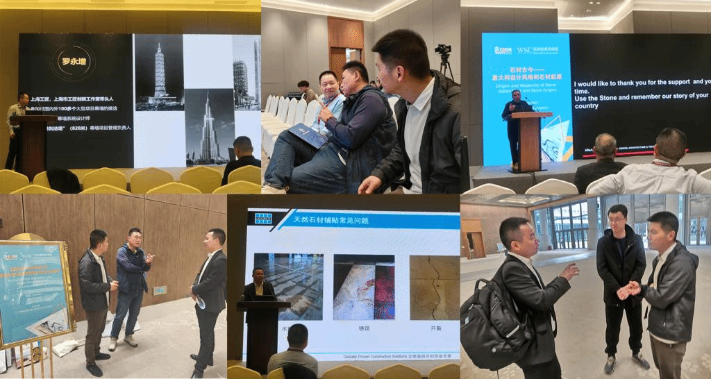 此次展会中今年会的老师们还参加了几场关于石材幕墙安装技术、石材湿贴与砌筑工艺以及国外设计风格与石材起源的论坛讲座,并在会后与发言人进行了深入的学习交流。
