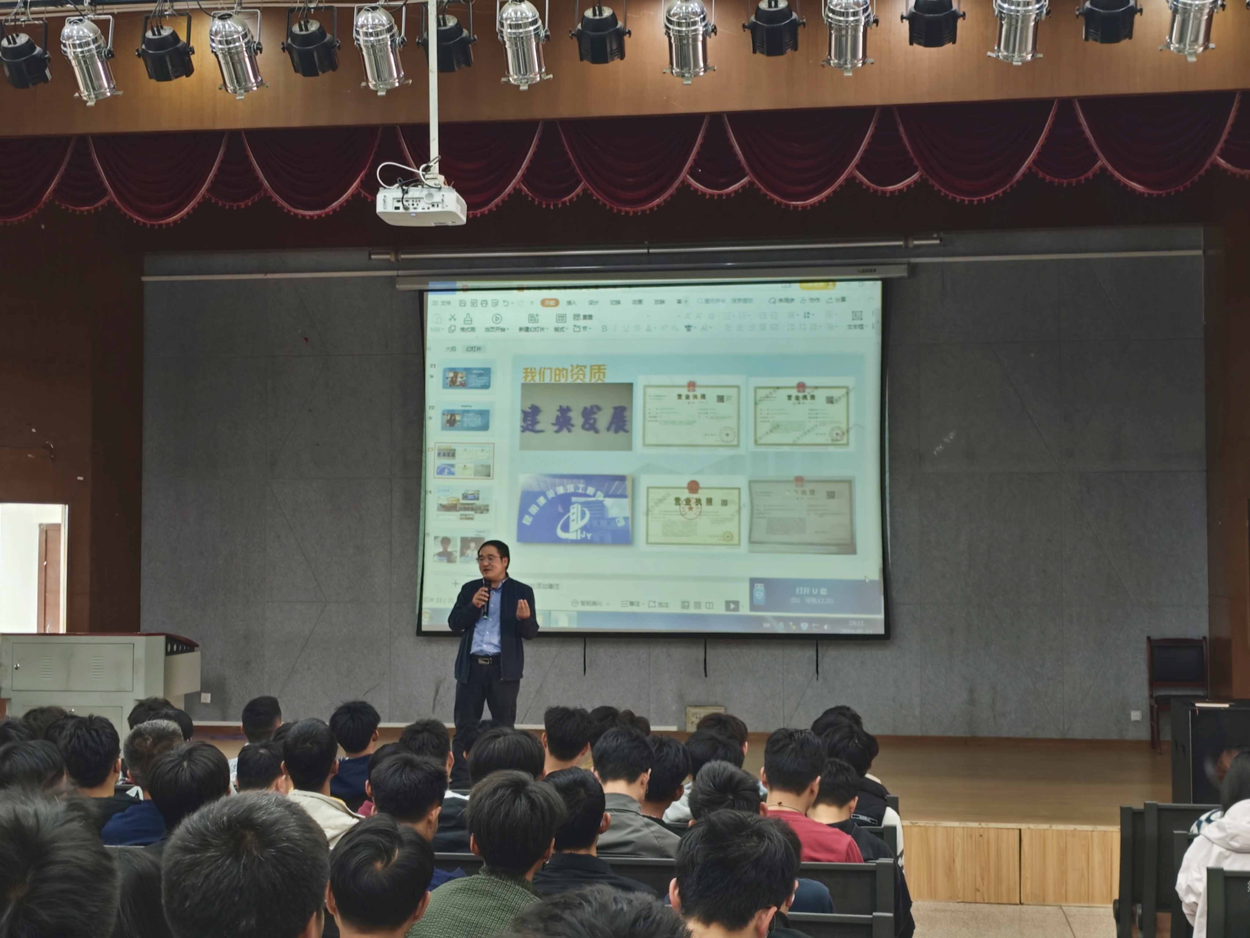 建英建筑工程有限公司代表分别就企业概况、发展前景、岗位需求、学徒培养模式及相关福利待遇等内容进行了详细介绍。企业代表们结合实际案例,深入浅出地阐述了建英建筑工程有限公司学徒培养模式的优势,让同学们对该培养模式有了更直观、更清晰的认识。