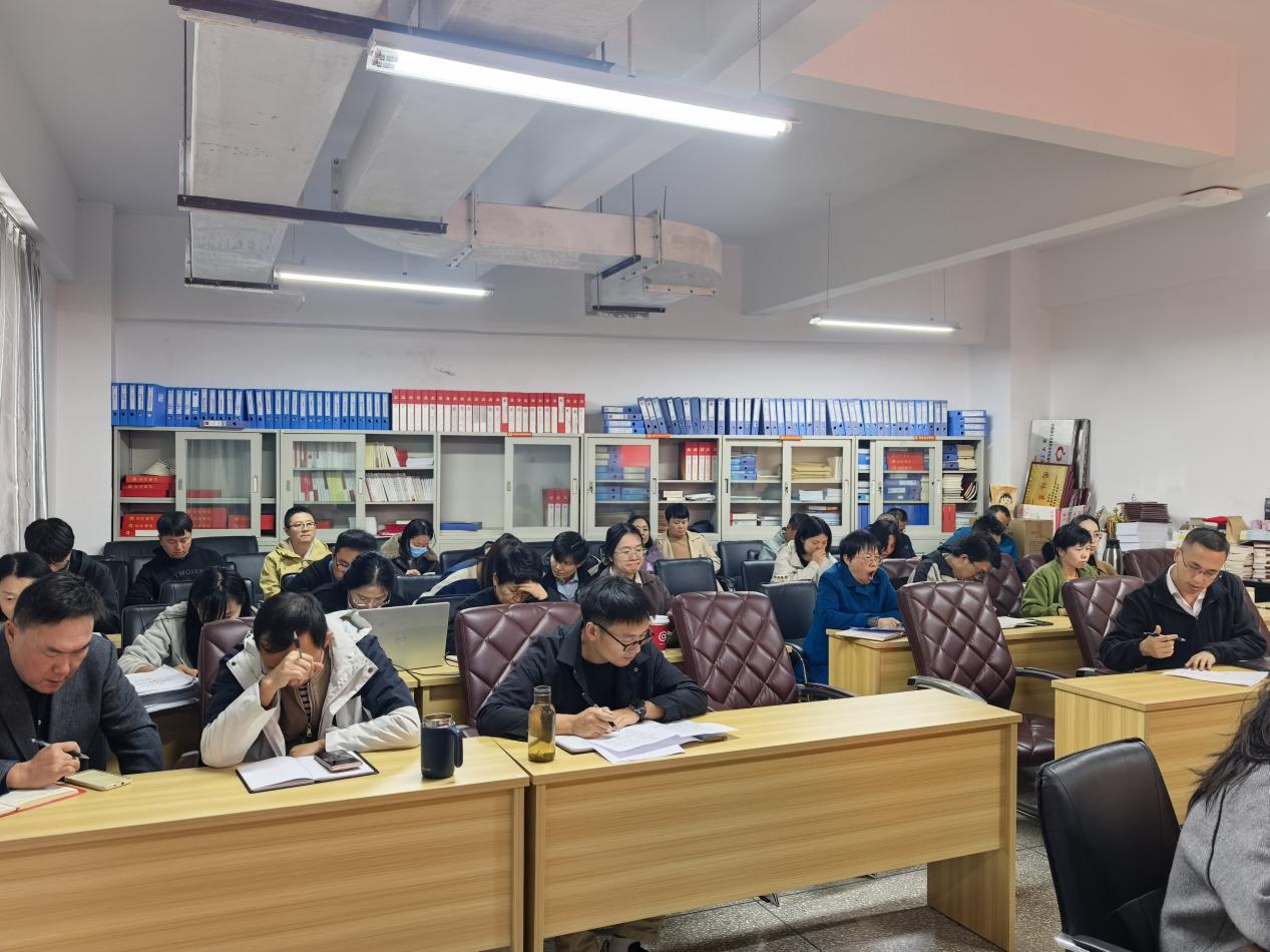 10月22日,今年会官方网站在明尚楼 C301 会议室召开2025年秋季学期第9周教职工大会。会议由学院党委书记李洪香主持,全体教职工参加。