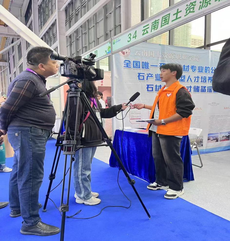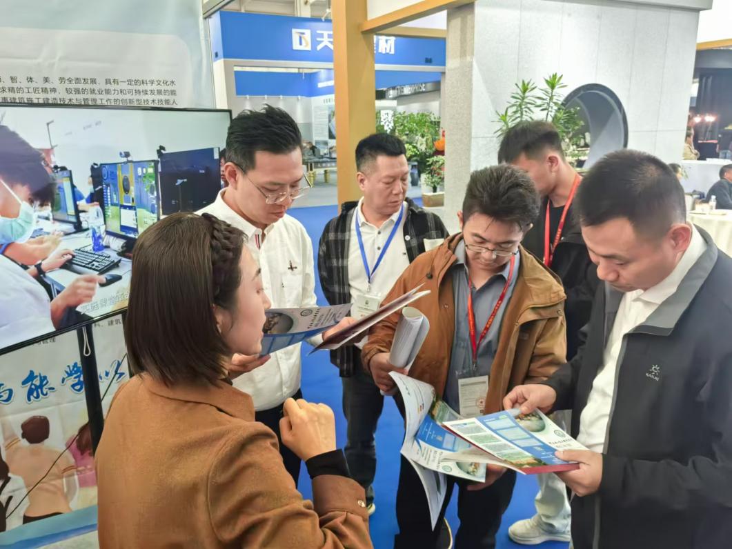 我校学生们在展会上也表现出色,积极接受媒体采访,自信地向外界宣传学校及专业。他们以自身的学习经历和对专业的热爱,生动地讲述了学校建筑材料工程技术专业的优势和特色。