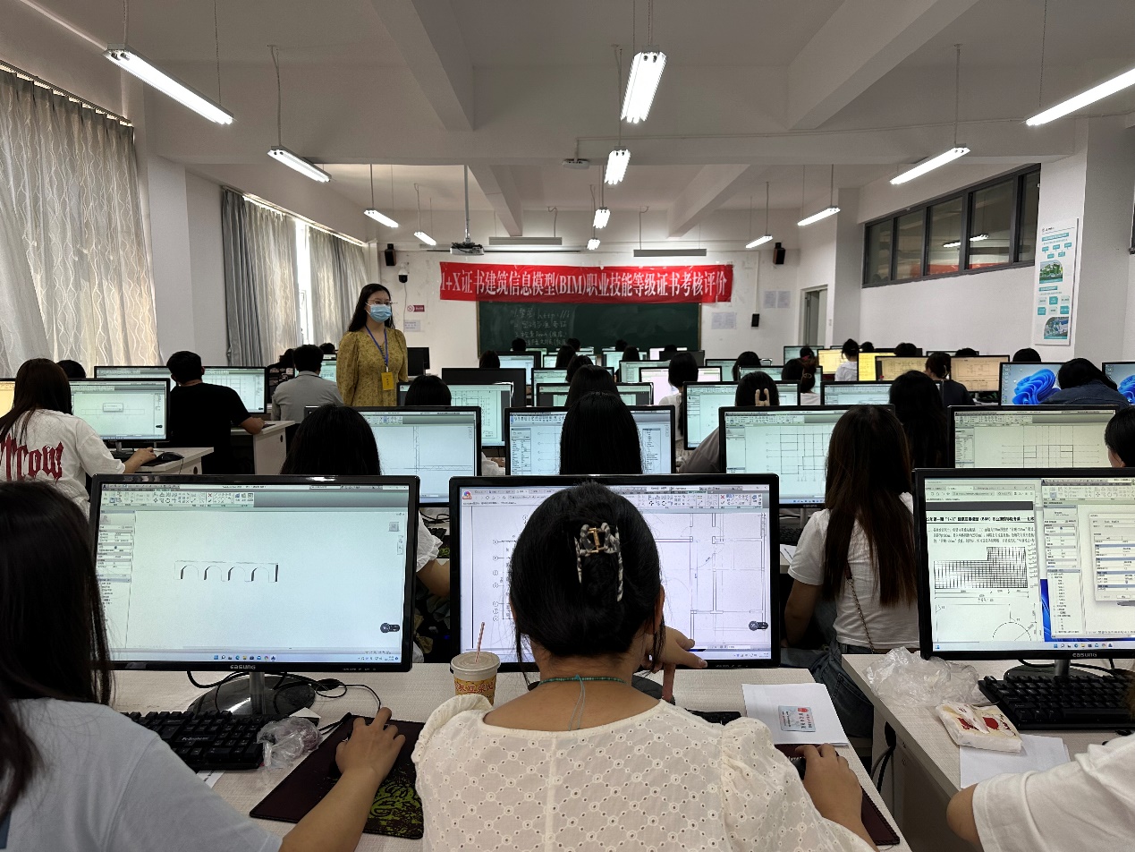 11月11日,今年会官方网站在明尚楼C504、C508实训室开展建筑信息模型(BIM)职业技能等级考试,85名22级工程造价专业的同学参加此次考试。学院成立考务工作领导小组负责本次考试的组织,安排考务负责人认真学习报名流程、考试平台操作管理流程。
