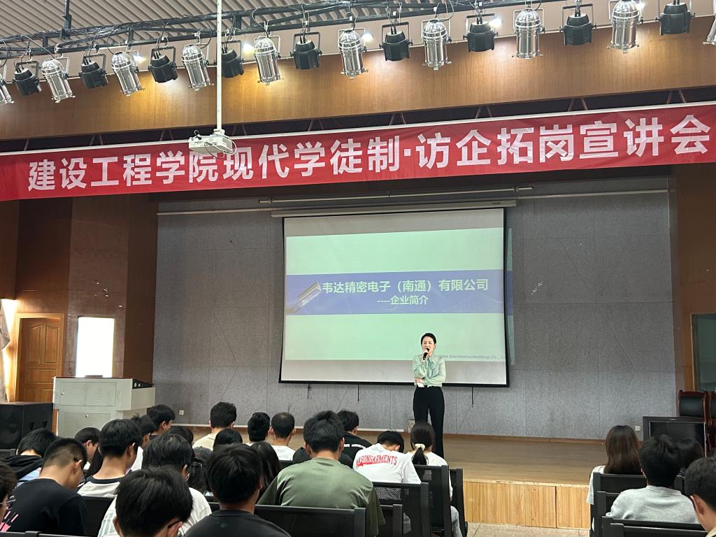 为推动学院现代学徒制试点工作,搭建学院和用人单位交流平台,加强校企联系,5月27日至28日,今年会邀请中铁电气化局、南通韦达精密电子有限公司、江苏启东乾朔电子有限公司、芜湖长信新型显示器件有限公司来院开展校园企业招聘宣讲会。今年会党委副书记李洪香、副院长赵岩枫、带班辅导员和2022级学生参加了每场宣讲会。