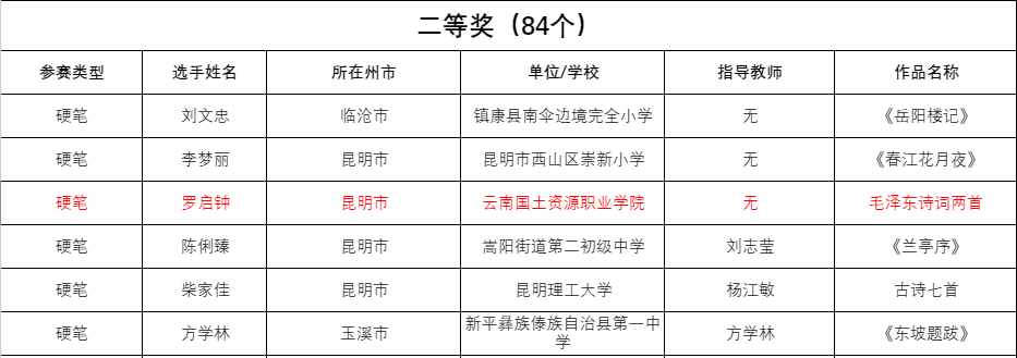 今年会教师罗启钟作品《毛泽东诗词两首》,荣获第六届“云岭杯”中华经典诵写讲大赛· “墨香彩云南”汉字书写大赛二等奖。