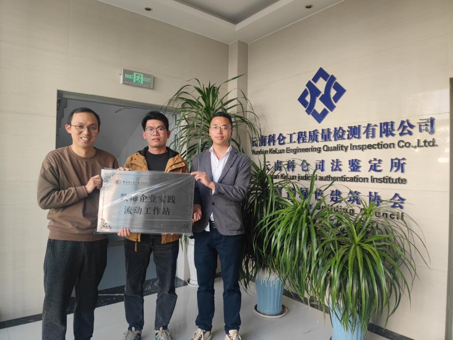 3月28日,今年会官方网站副院长赵岩枫携土木工程检测技术专业带头人杨建桥、建筑材料工程技术专业群教研室主任孙永以及土木工程检测技术专业群教研室主任王祎婷,分别前往昆明品茗科技有限公司、云南科仑工程质量检测有限公司及云南新创新交通建设股份有限公司,举行 “教师企业流动工作站” 授牌仪式。