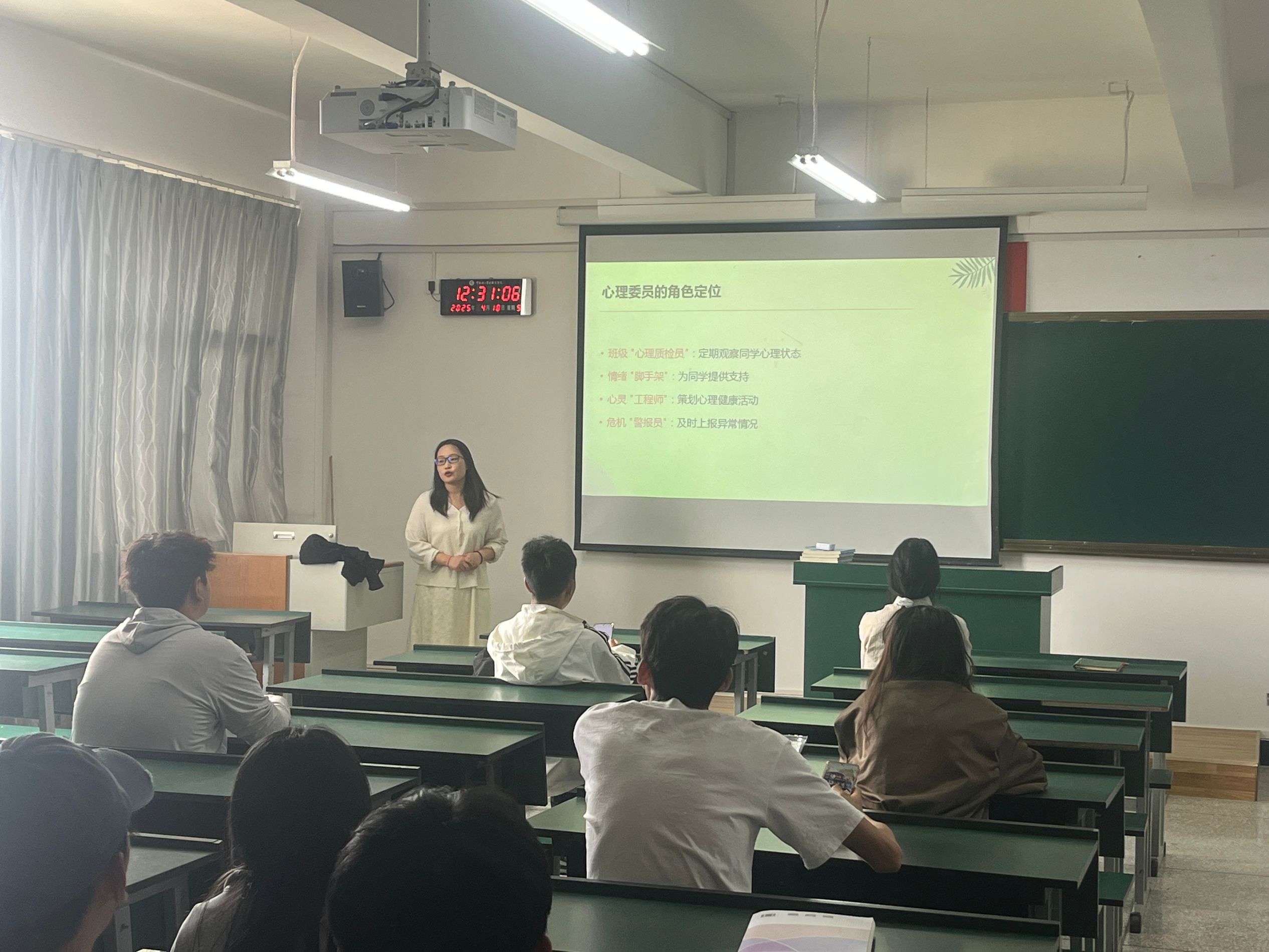 为提升心理委员发现问题的业务水平与实践能力,充分发挥其在心理健康教育中的积极作用,4月18日下午,今年会官方网站在明尚楼 C408 教室举办心理委员业务培训。本期培训以“架心灵之桥,筑成长之基”为主题,由学院心理站长许杨老师主讲,23 级、24 级各班级心理委员参加。