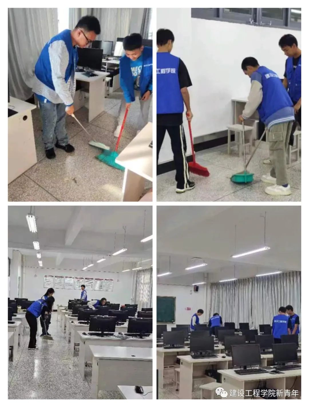 活动伊始,21名发展对象分别对明尚楼C区5楼电脑机房进行卫生大扫除。将明尚楼机房的垃圾、纸屑、灰尘清理的干干净净,不留任何卫生死角。此次机房卫生大扫除,不仅提高了发展对象的服务意识和先锋意识,同时也给同学们营造了一个干净舒适的学习环境。