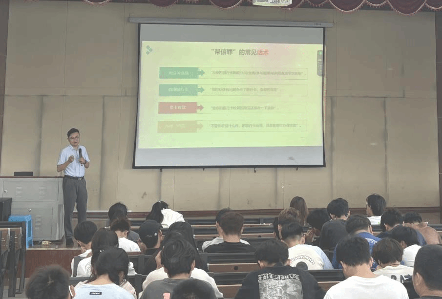 曹律师以发生在大学生中的真实案例为切入点,从三个方面进行讲解。一是防范落入“帮信罪陷阱。“帮信罪”的常见形式有:租售微信号、刷单走流水、帮助犯罪分子拉微信群、出售出借“两卡”——“银行卡”和“手机卡”、提供结算账户给他人使用收取佣金、为诈骗犯罪集团提供开发软件、提供技术支持等。曹律师特别提醒同学们切勿贪小便宜将自己办理的手机卡、个人银行卡、微信、支付宝等支付平台账户买卖、租赁给他人。其次还要提升个人保护意识,妥善保护好身份证、银行卡、手机卡,一旦丢失立即挂失,对于废弃不用的应及时办理注销业务,不随意丢弃。此外,在外实习时,要充分了解工作岗位,不要轻易相信QQ陌生人私信、贴吧或街边小广告等信息。
