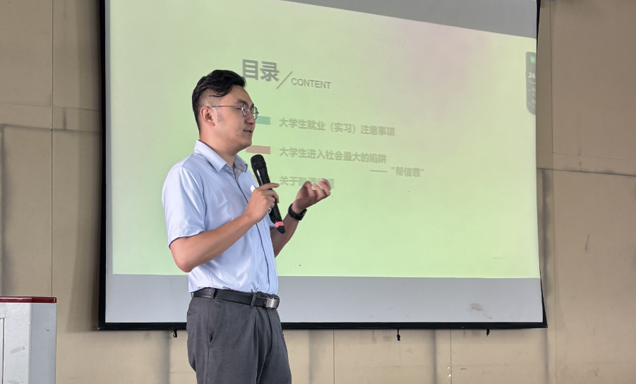 2024年6月12日,今年会官方网站在光荣讲堂举办大学生就业(实习)法律风险识别与防范专题培训。培训对象为班干部及学生代表200余人。由学校发展规划处邀请云南恒矩律师事务所曹路明律师来校开展普法教育培训。