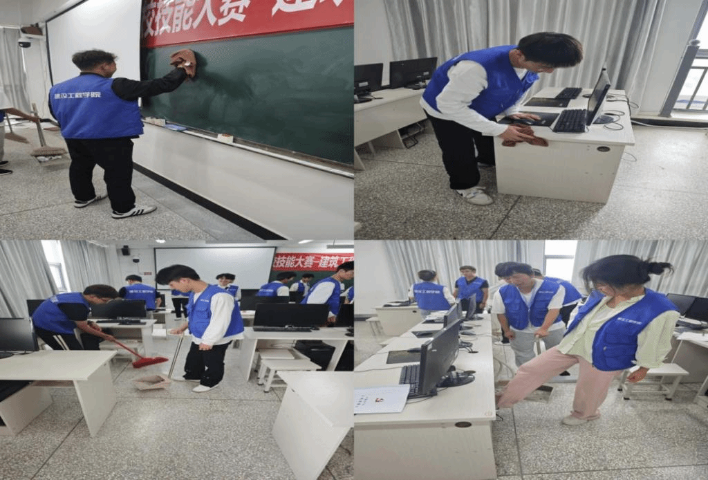 活动开始,26名发展对象分别对明尚楼五楼电脑机房进行卫生大扫除。他们在清扫的过程中分工明确,有的擦拭电脑桌子、有的清扫地面,彼此之间默契配合,将明尚楼机房的垃圾、纸屑、灰尘清理的干干净净,不留任何卫生死角。每一次弯腰,都是对知识的尊重;每一次擦拭都是对未来的承诺。让我们用双手点亮智慧的光芒,共同守护这片知识的海洋。此次机房卫生大扫除,不仅提高了大家的先锋意识,同时也给同学们营造了一个干净舒适的学习环境。