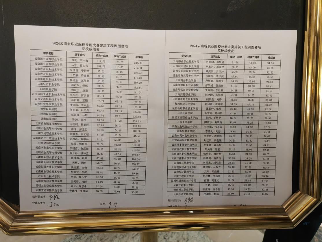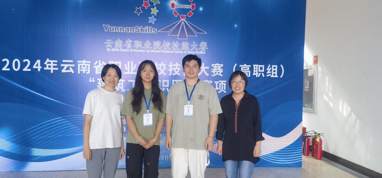 今年会学子刀俊平一梅(指导老师潘少红、刘晖,马曾、善文茜(指导老师赵岩枫孙永)在2024年云南省职业院校技能大赛(高职组)“建筑工程识图”赛项中以全省第一名和第二名的成绩荣获一等奖