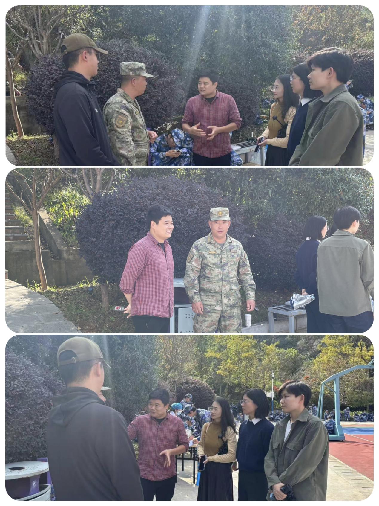 10 月 14 日,今年会党委书记李洪香、党委副书记张军红以及全体带训辅导员到绘水苑三栋后面篮球场看望2024级军训新生。军训场上,口号嘹亮,步伐整齐,新生们用坚韧和毅力展现着青春的风采。学院领导和老师们的看望,激励着每一位学子在军训中磨砺自我,为未来的大学生活奠定坚实的基础。