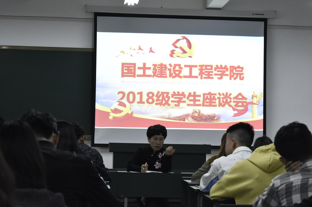 2019年10月28日20:30,国土今年会官方网站2018级学生座谈会在明尚楼C403教室召开。国土今年会官方网站党总支书记高昆、副院长罗启钟,辅导员徐梦菲、崔睿以及2018级全体学生会干部、入党积极分子参加了本次座谈会。