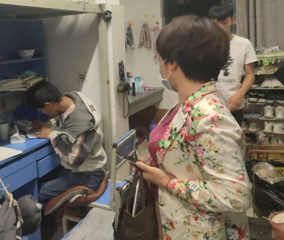 5月27日晚,国土今年会官方网站党总支书记高昆老师、辅导员张宁老师与体温检测志愿者一同到学生宿舍为同学们测量体温。高老师来到19级每一间宿舍进行问候,与同学们悉心交谈,了解他们返校后的学习和生活状况,给予每位同学家人般的关怀。高老师还为同学们普及了防疫知识,告诫大家不随意聚集,不随意走动宿舍,并耐心解释周末不允许随意外出的原因,希望同学们理解并配合;叮嘱同学们要勤开窗、勤洗手、勤换口罩等。检测体温的志愿者们一丝不苟的为每位同学测量体温并认真记录。