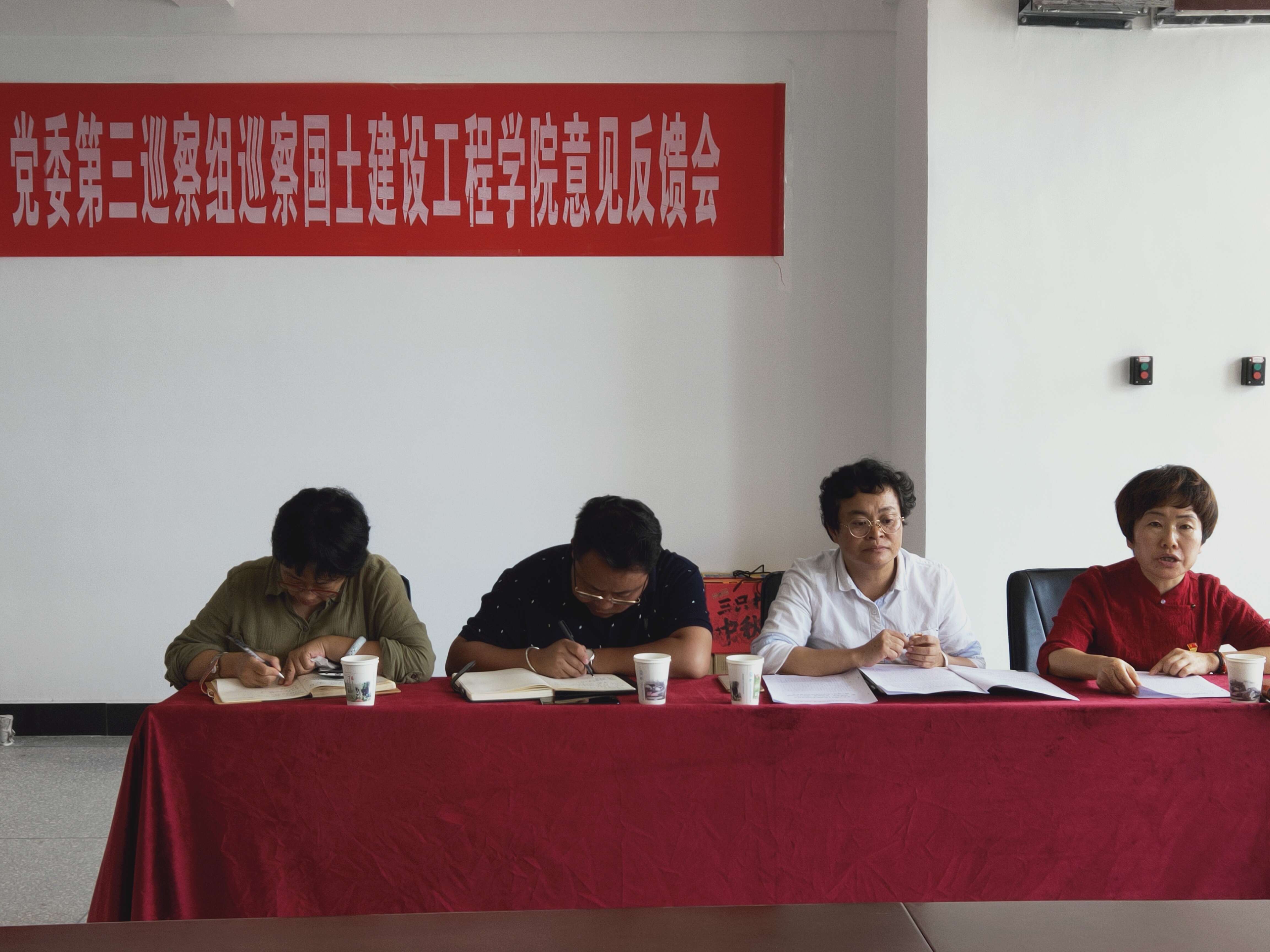按照学校党委《关于开展第一届党委第二轮巡查工作的通知》统一部署,由纪委办方荣组长带领第三巡察组进驻国土建筑工程学院开展巡查工作。通过听取汇报、开展访谈、设立意见箱、查阅资料、走访调研等形式进行巡察,于9月16日中午1点到今年会就巡察发现的问题进行反馈。学校纪委副书记方荣(巡察组组长),巡察组员李健、陆祥,国土今年会官方网站党总支书记高昆与建工学院党总支所属全体教职工参加会议。会议由党总支书记高昆主持。