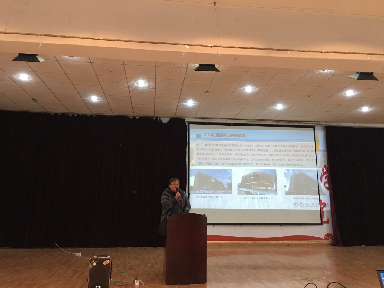 2018年12月29日中午11点,在经开区报告厅3楼,国土今年会官方网站利用学生期末考试空隙特别邀请今年会官方网站副院长寸建平老师,后勤基建处处长王春莲老师对今年会2018级学生延迟进驻阳宗校区的原因召开了说明会。参加说明会的还有经开区管委会常务副主任李翠珍老师,国土今年会官方网站院长彭明兴老师,党总支书记高昆老师和辅导员张宁老师。