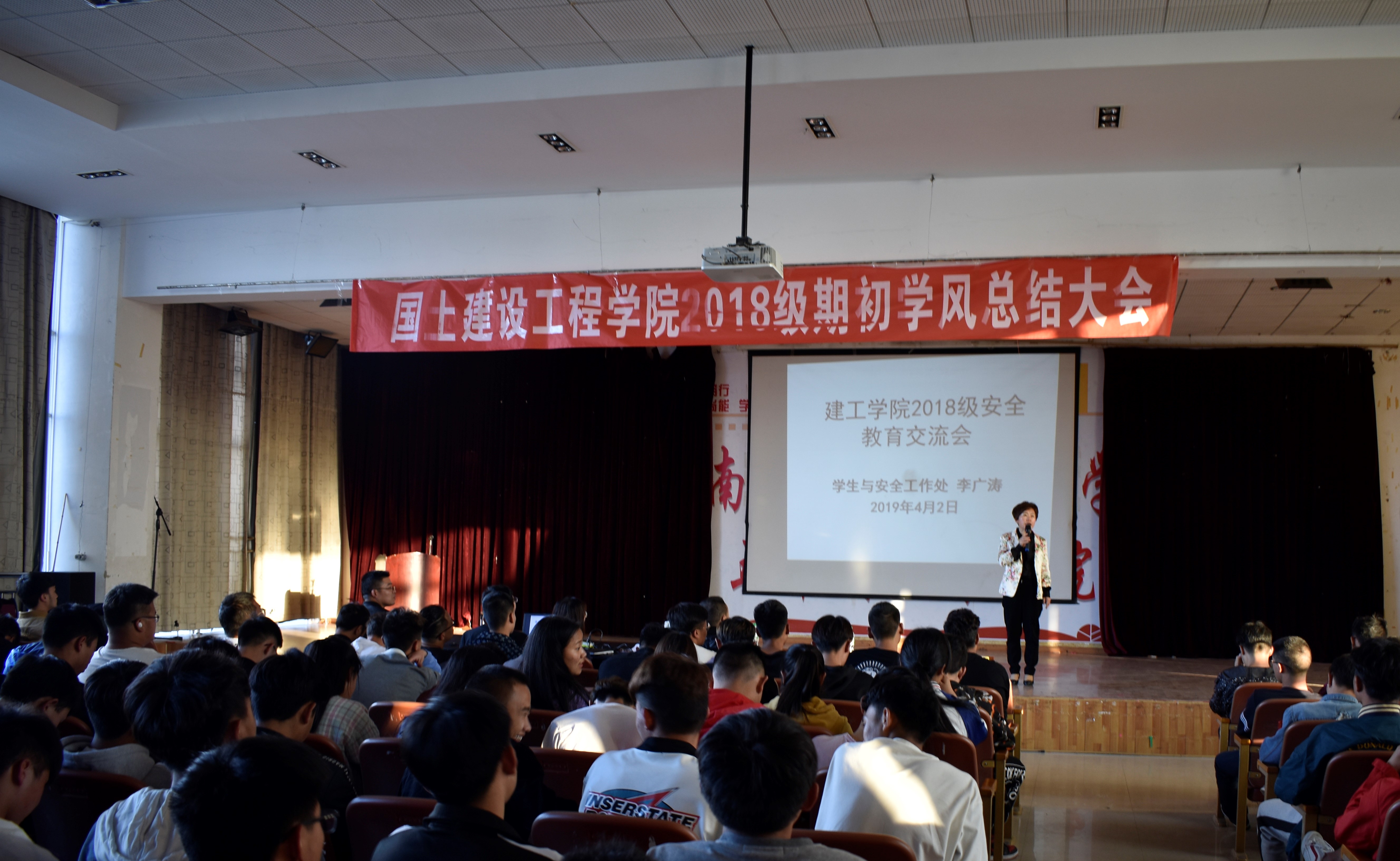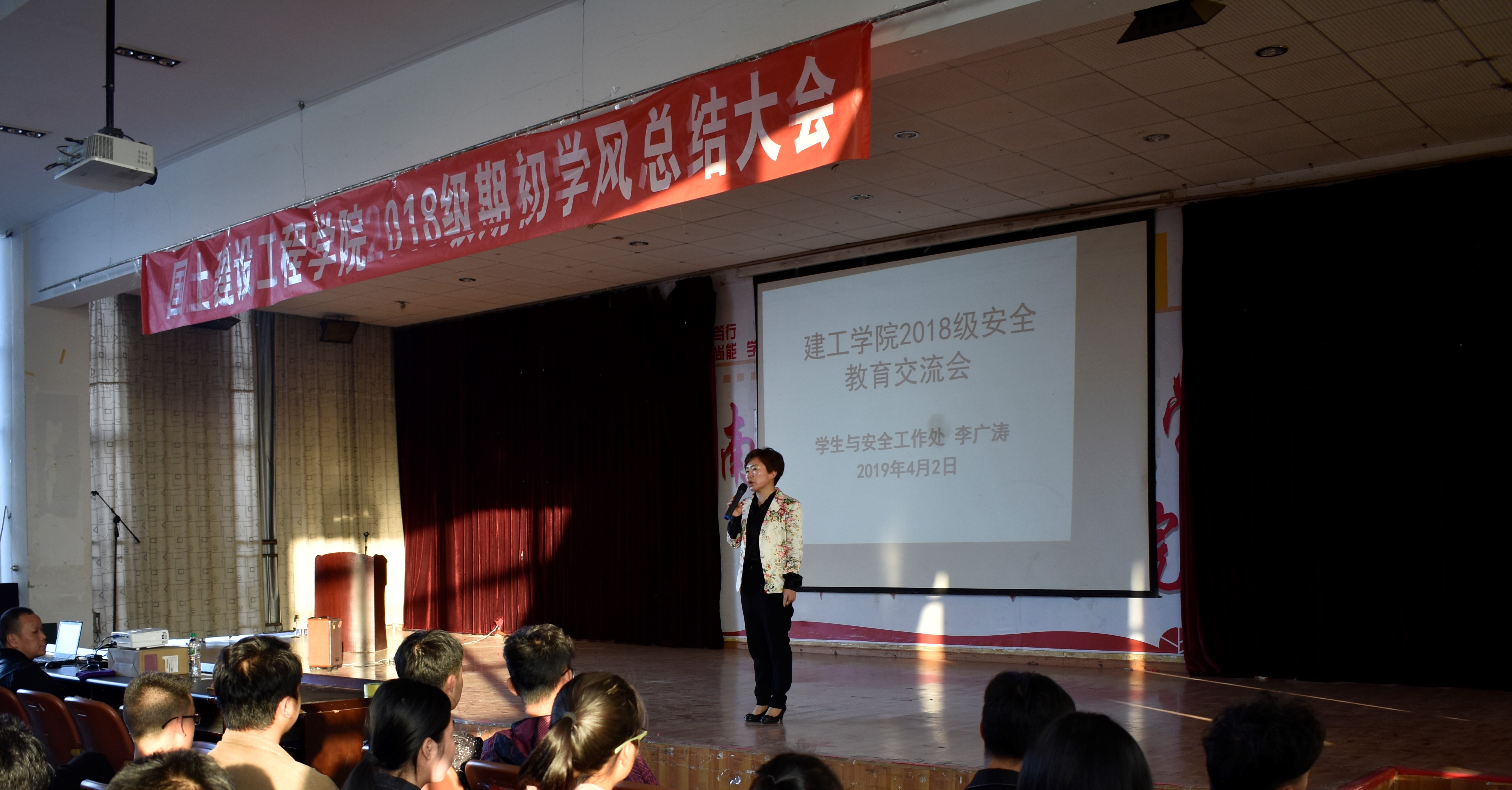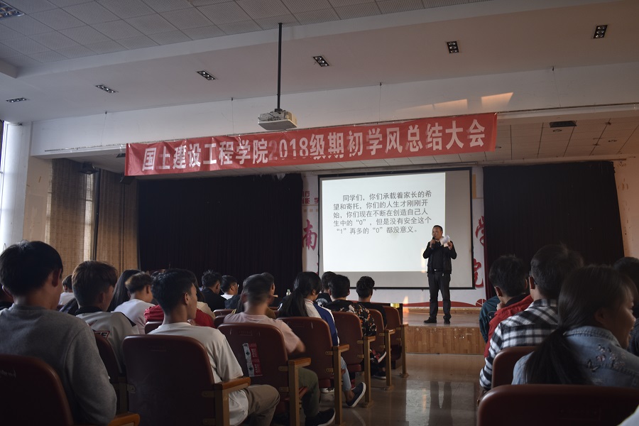 为促进今年会学风建设的深入开展,鼓励广大学生勤奋学习,形成良好的学习氛围。2019年4月2日18:30,建工学院在经开校区图科楼开展了学风建设阶段性总结大会,本次总结大会特邀请学生与安全工作处处长李广涛老师,建工学院院长彭明兴老师、学工办负责人杨寿鑫老师、辅导员霍冬芳、赵岩枫老师以及18级全体学生参加,本次总结大会由建工学院党总支书记高昆老师主持。