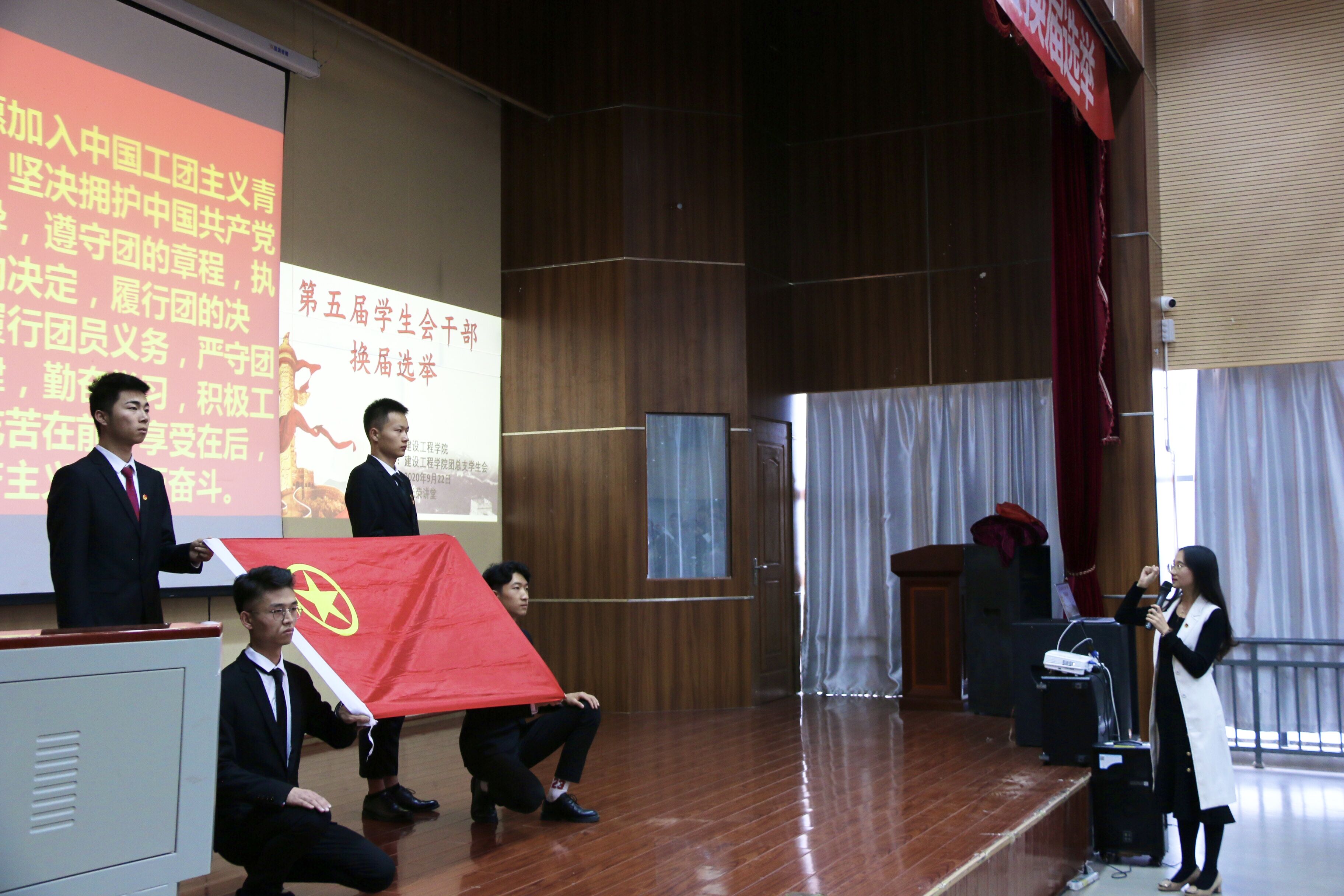 活动伊始,全体起立,迎团旗,奏唱团歌,激情澎湃下团总支书记张宁老师带领着全部团学干部宣誓,重温了当初入团的信念与激情。