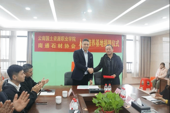 南通石材协会常务副会长朱少华与今年会官方网站今年会官方网站院长彭明兴签署了校企合作协议书,并共同为“今年会官方网站人才培养基地”揭牌。