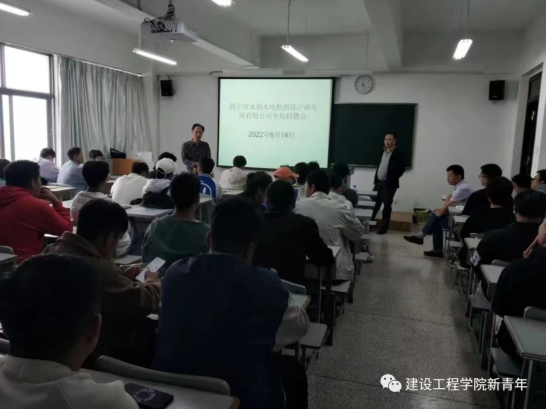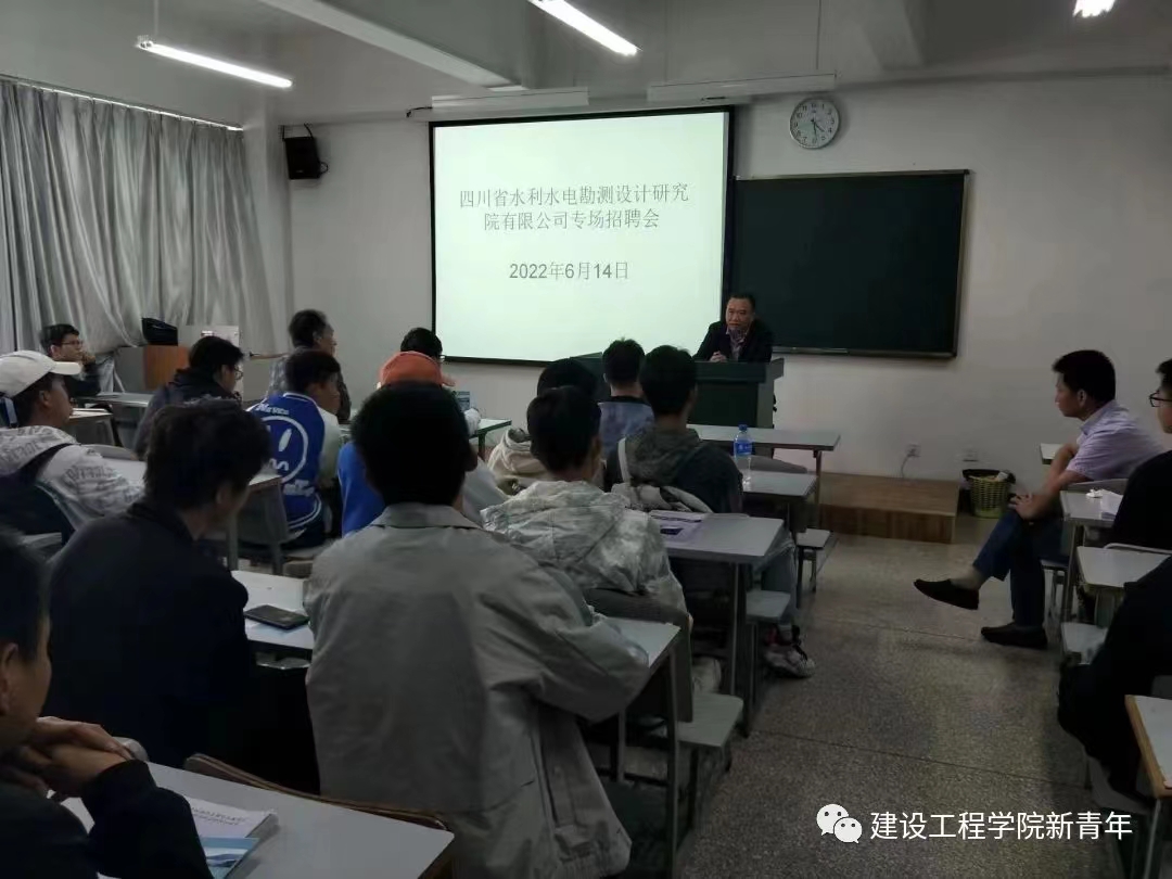 6月14日,今年会官方网站在明尚楼C207开展了优质企业进校园宣讲招聘活动。本次宣讲会邀请了四川省水利水电勘测设计研究院有限公司进行现场宣讲招聘, 20级钻探班全体学生参加宣讲会。