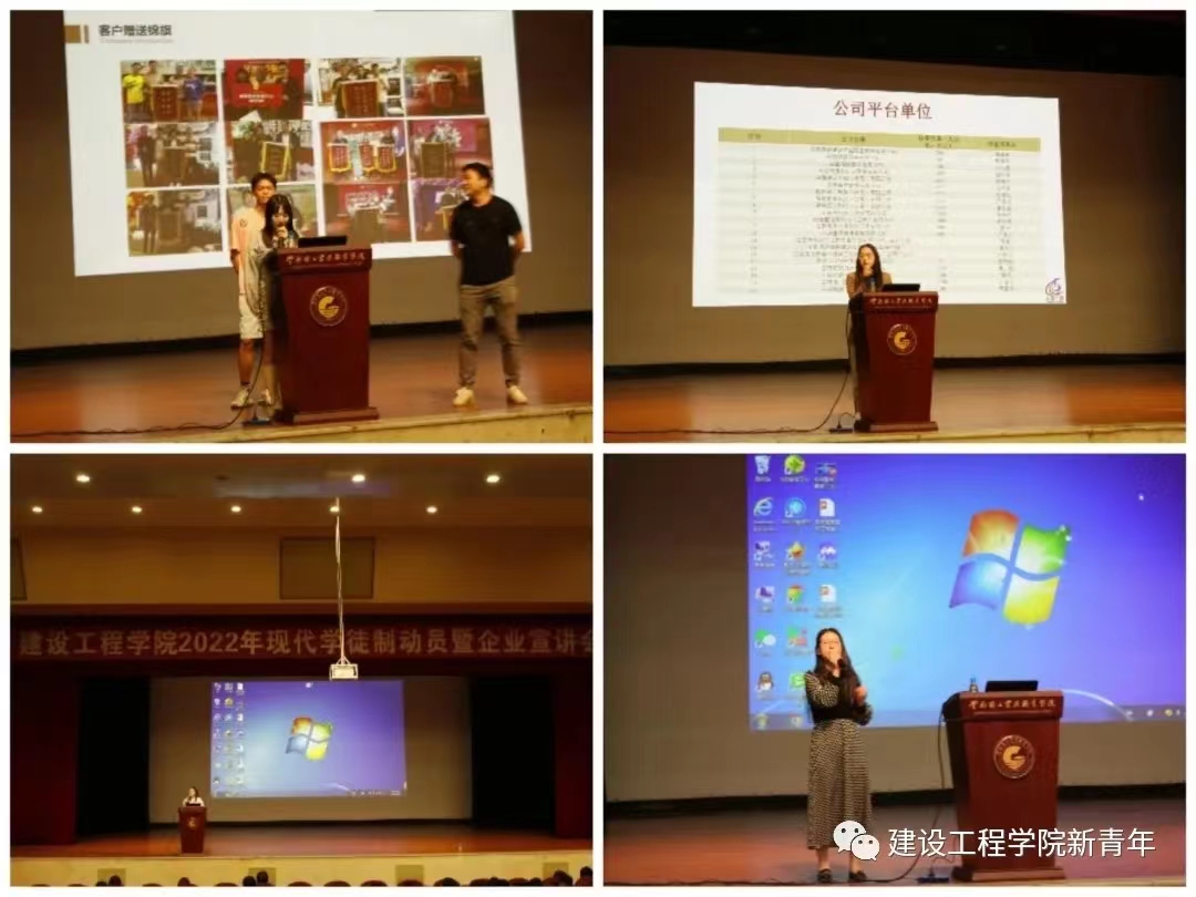 为加深学生对现代学徒制的认识和了解,更好地引导学生进行顶岗实习工作。6月15日下午,今年会官方网站在明礼堂召开了2022年现代学徒制动员暨企业宣讲会。就业与合作处副处长钱敏,教务处实习实训科科长康仕林,今年会官方网站党总支书记李艳、副书记徐波,副院长罗启钟,征兵负责人杨寿鑫、20级全体班主任、辅导员和学生,云南月盛建设工程项目管理有限公司、云南创艺装饰工程有限公司、云南建英建筑工程有限公司、昆明二拾思城装饰工程有限公司、云南云智工程检测鉴定有限公司等五家企业负责人参加此次宣讲会。