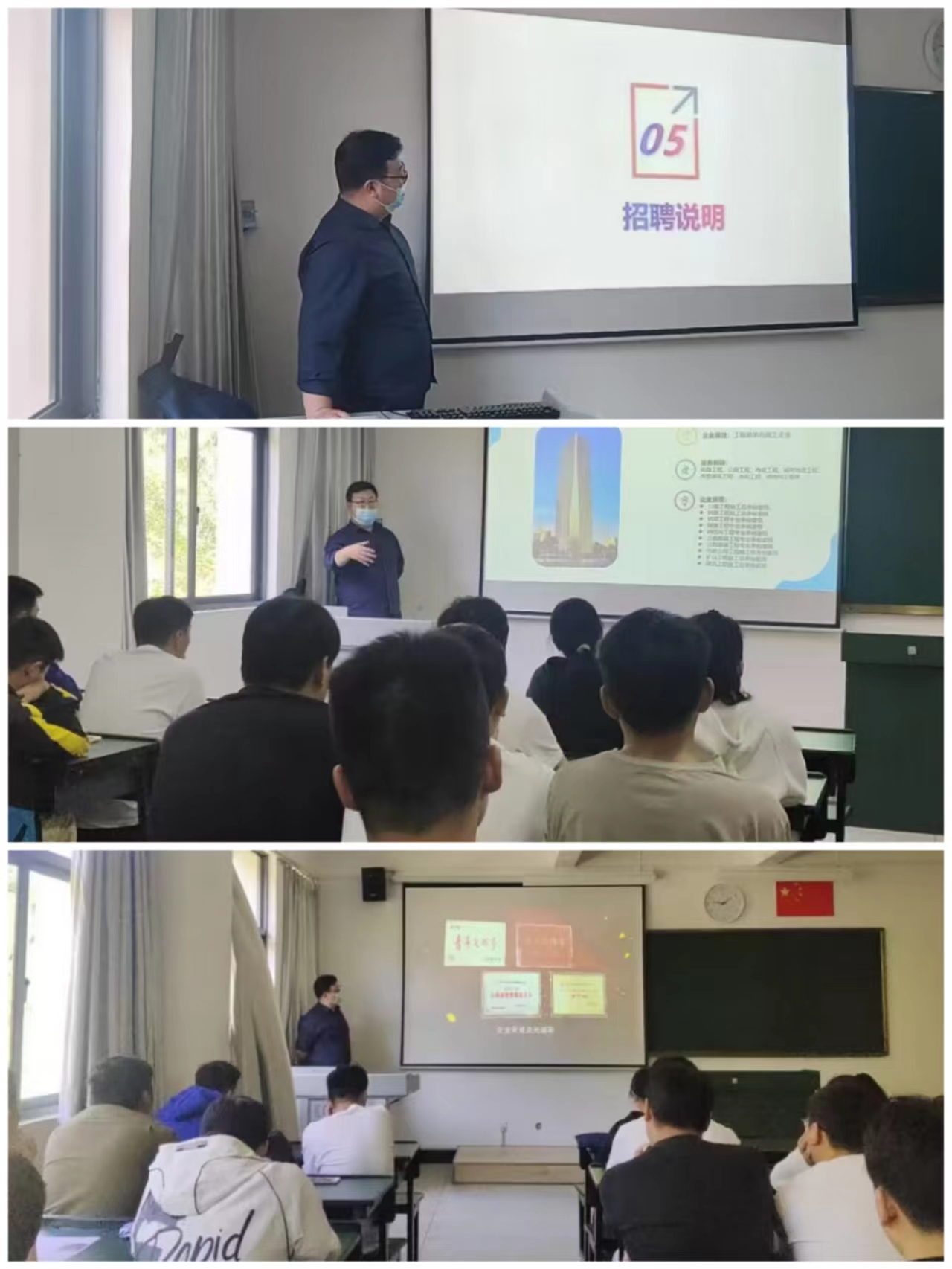 企业代表先后以视频,图片、PPT等方式,从企业文化、企业核心价值观、企业岗位需求及用人标准、企业人才储备及人才培养等多方面进行宣讲,帮助同学们确定未来职业生涯规划。宣讲结束后,同学们积极投递简历面试。随着最后一位同学的面试结束,本次宣讲会也到了尾声。