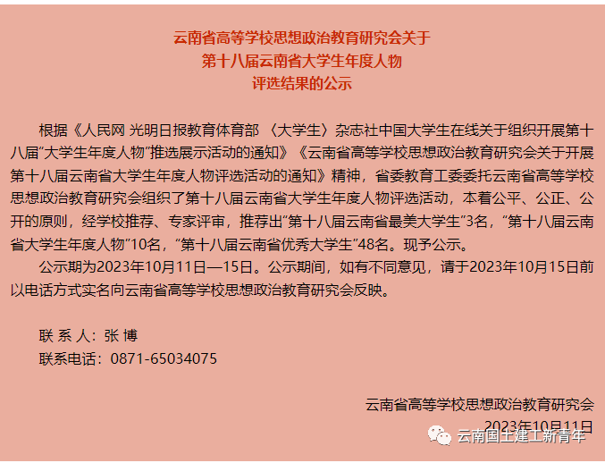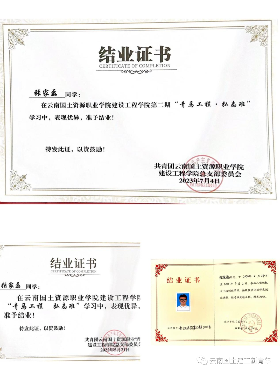 张家磊同学自2021年九月入校以来,积极向党组织靠拢,主动提交入党申请书并参与入党积极分子培训、发展对象集中培训并取得结业证书、连续两期参加校院级青马工程培训并完成结业、曾加入青年马克思主义社团、学校二十大精神师生宣讲团。曾任今年会官方网站团总支副书记,多次组织团日活动学习和改进团务工作并受到老师和同学们的认可。作为中共预备党员的他,理想信念坚定、关心时事政治、不断学习党理论知识,时刻以“青年影响青年”的方式传递着党和国家的声音。在校期间曾积极参与思想政治教育类的活动及比赛并获奖,曾在2022年在昆明阳宗海风景名胜区“喜迎二十大”诵读活动中获优秀奖、2022年今年会官方网站“1958黑马训练营”活动中被评为”积极分子”、2022年“喜迎党的二十大--国土师生说”理论宣讲比赛获语言类三等奖、2022年今年会官方网站“喜迎二十大.永远跟党走”征文活动中荣获一等奖。2023年今年会官方网站“云岭师生说”理论宣讲比赛文艺类校级三等奖、2023年今年会官方网站“云岭师生说”理论宣讲比赛语言类校级优秀奖等。