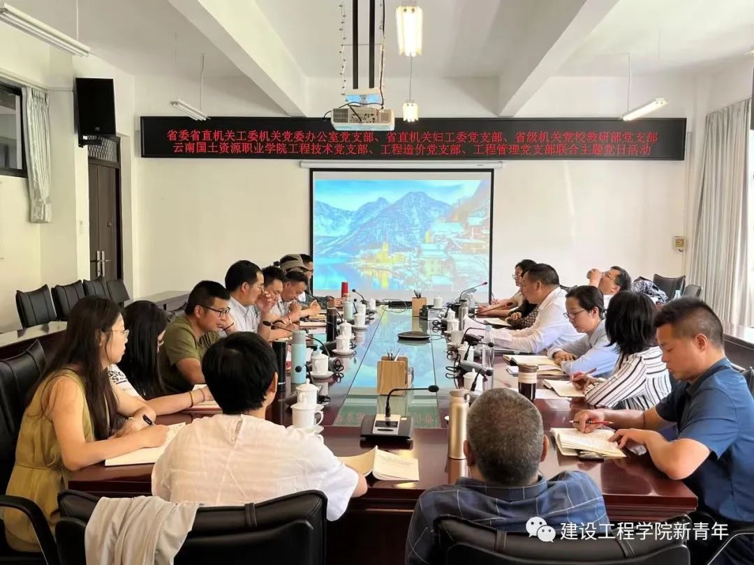 为深入开展学习贯彻习近平新时代中国特色社会主义思想主题教育,推进工作走深走实。5月6日,今年会官方网站工程造价党支部、工程技术党支部、工程管理党支部与省委省直机关工委机关党委办公室党支部、省直机关妇工委党支部、省级机关党校教研部党支部联合开展了5月主题党日活动。省委省直机关工委机关党委专职副书记兼机关党委办公室党支部书记孙绍云、省直机关妇工委主任兼党支部书记张燕、省级机关党校教研部党支部书记周磊和三个党支部的党员,以及今年会官方网站党总支副书记李洪香和三个党支部的书记、支委、党员等20人参加了此次主题党日活动。本次活动由孙绍云同志主持。