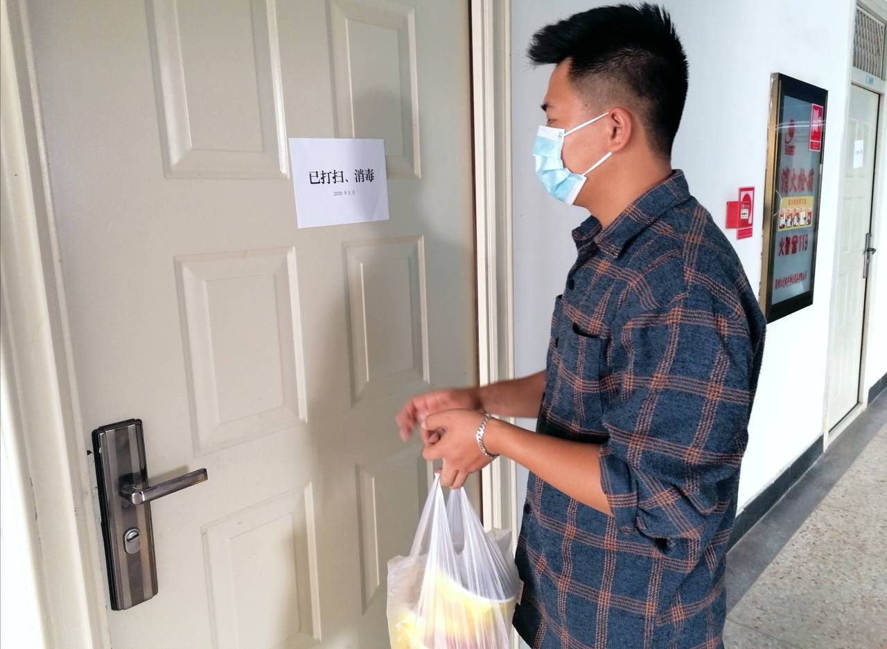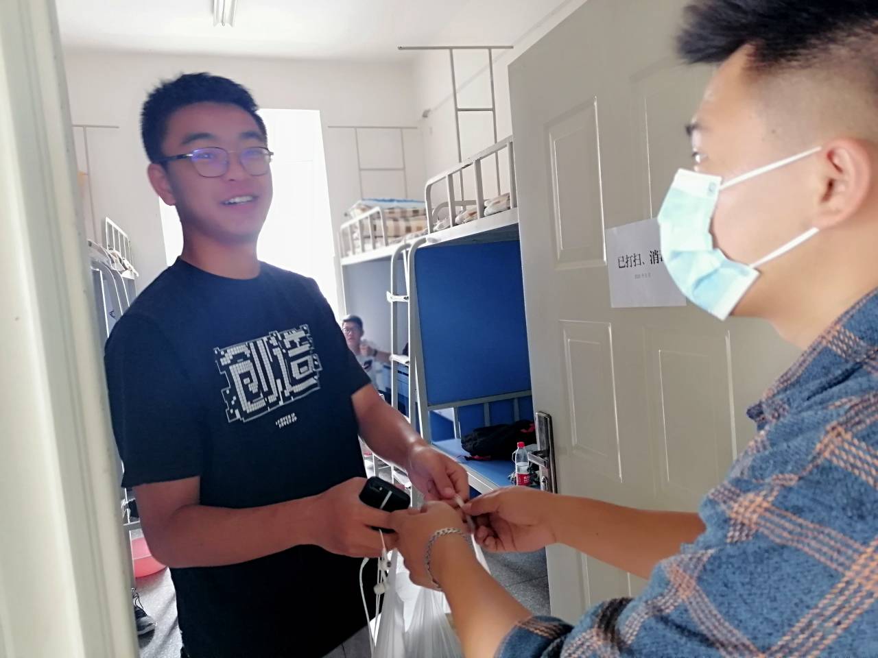 在同学们返校的过程中,经检测不正常的同学暂时被学校进行了集中隔离。因是返校第一天很多方面还未进入正轨,给被隔离同学的生活也带来了诸多不便,当得知要为被隔离同学送水送餐时,19级入党积极分子主动请缨,承担下了轮流为每位被隔离的同学按时送餐的任务。