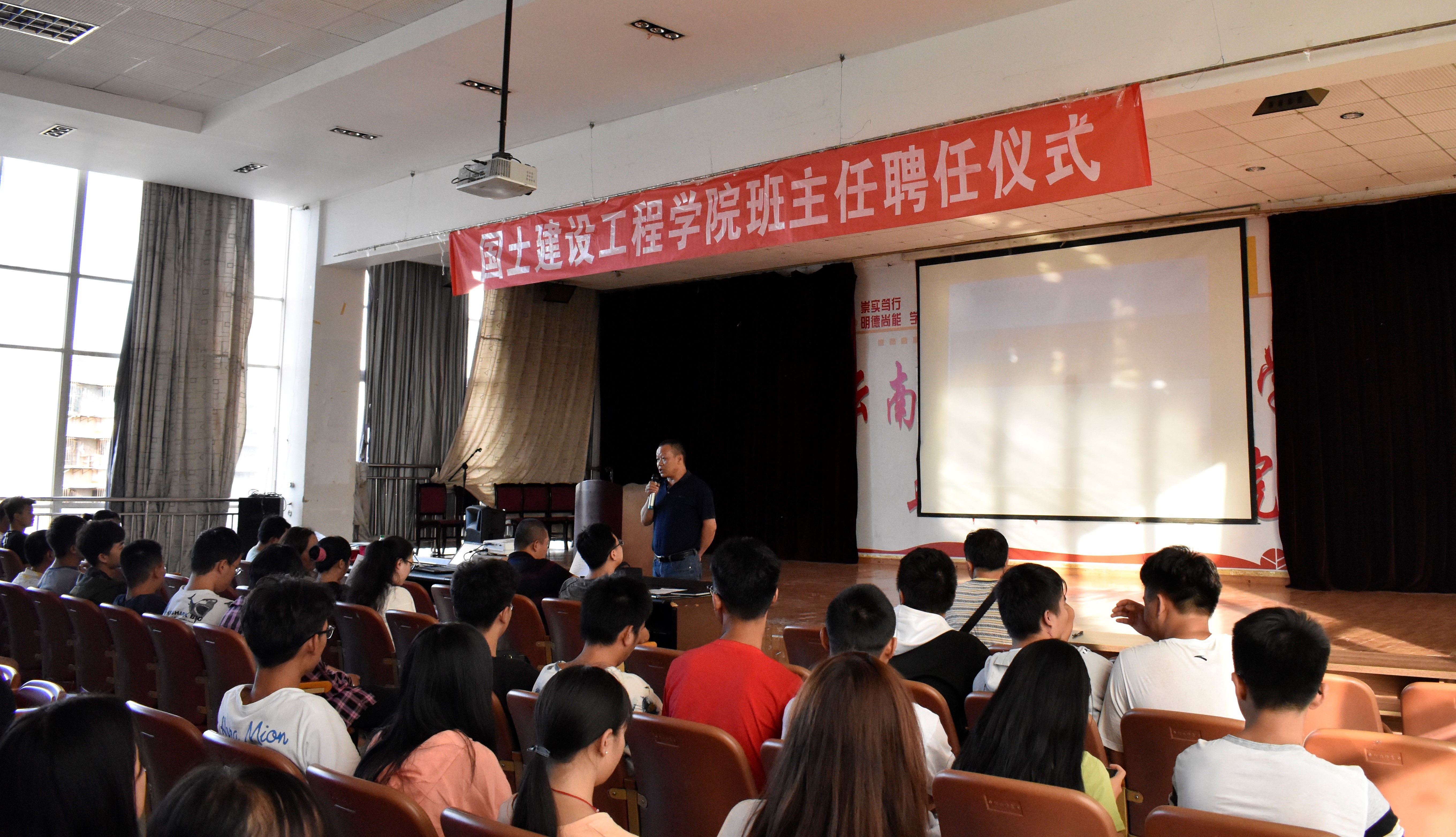 为进一步提高学院对学生的管理水平和工作效率,提升教师的归属感和使命感。国土今年会官方网站于2019年6月20日12:40、18:30分别在阳宗校区堪物楼B区108和经开校区图科楼三楼报告厅举办了班主任聘任仪式活动。建工学院院长彭明兴老师、副院长罗启钟老师、17级、18级全体辅导员及班主任、17级和18级各班班干部代表参加聘任仪式,两次仪式都由杨寿鑫老师主持。