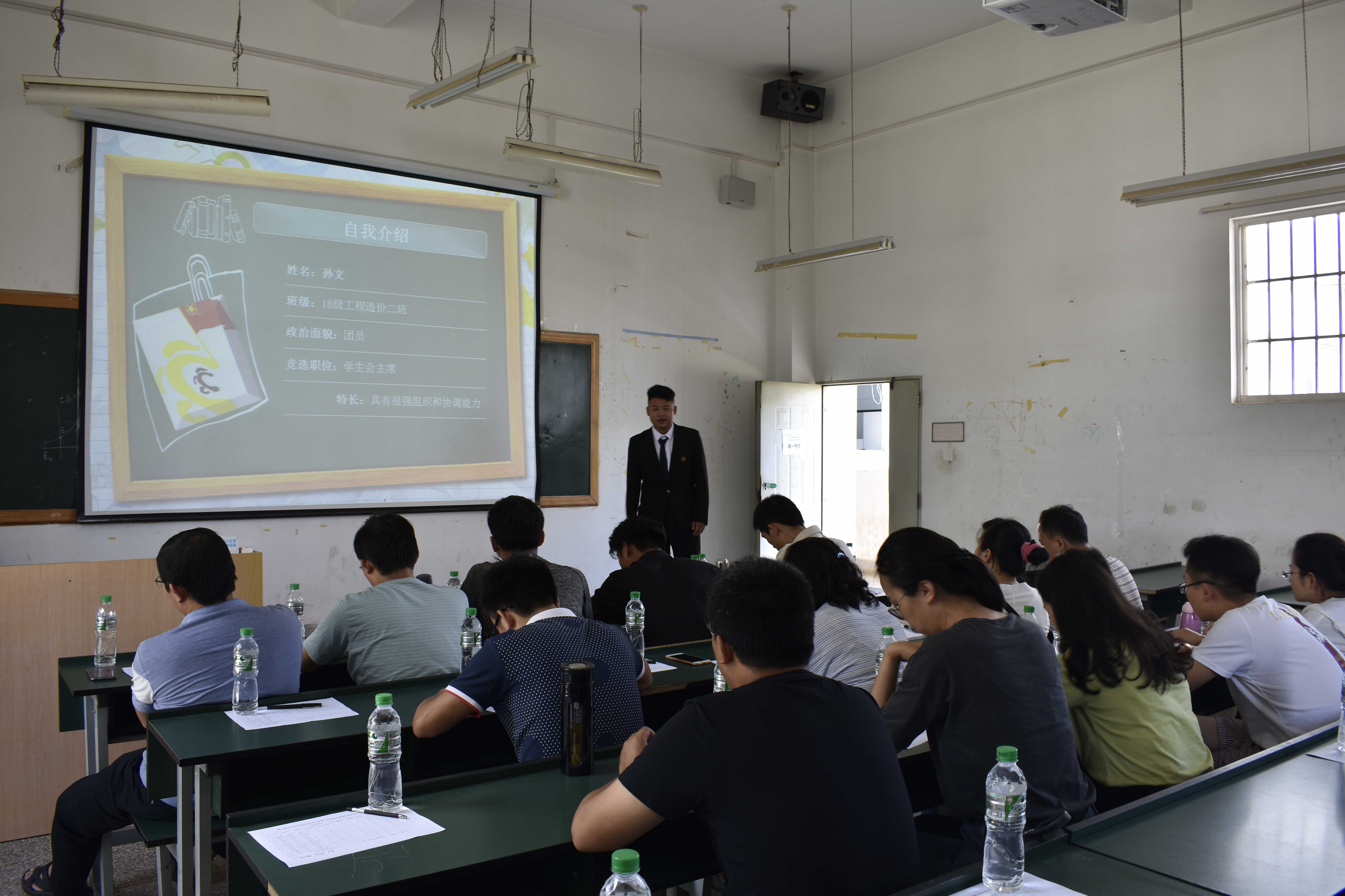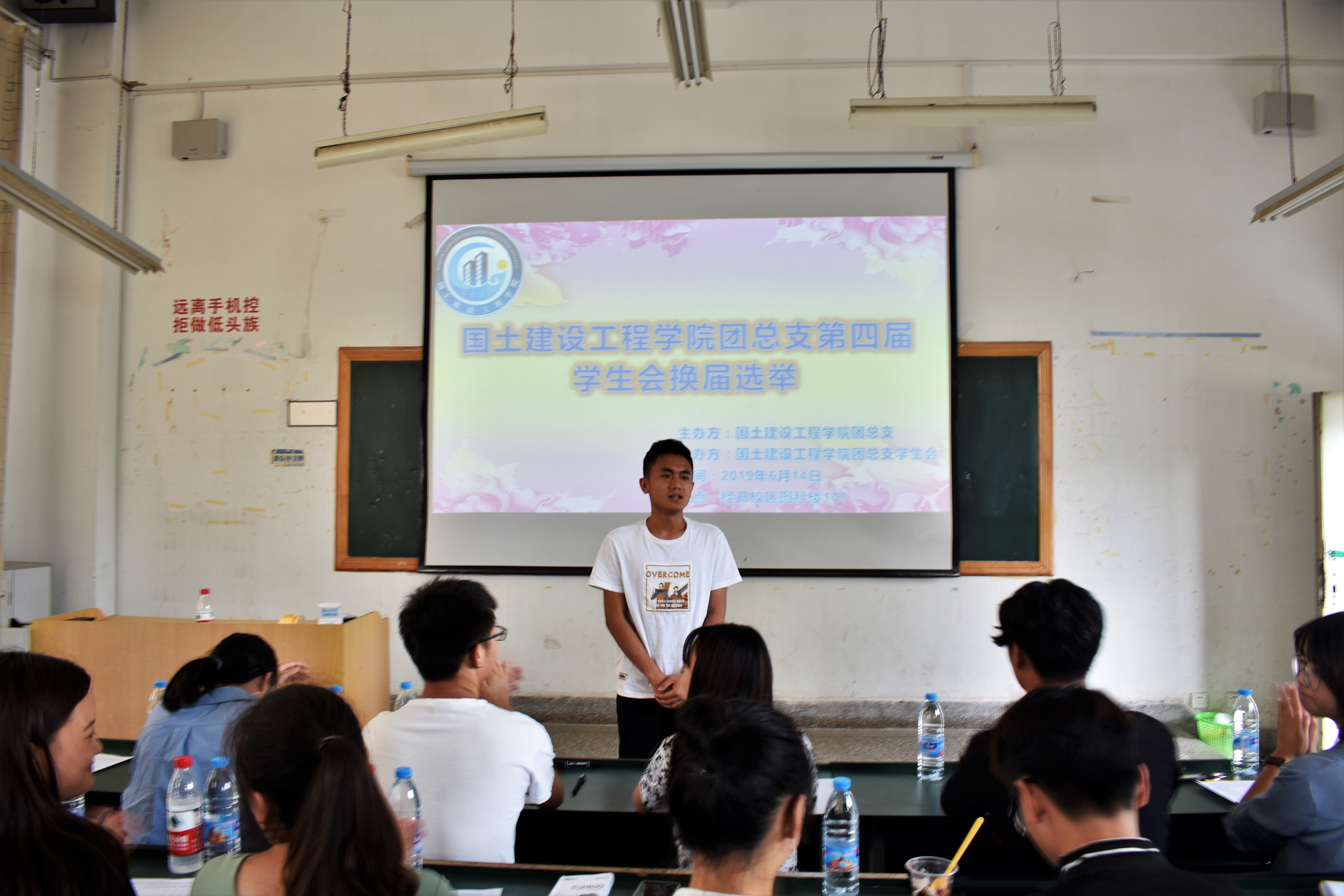 第三轮主席团竞选于2019年6月21日14:00在经开校区图科楼101进行。工程造价党支部书记廖术龙老师、工程管理党支部书记杨建桥老师、学工办(负责人)及团总支书记杨寿鑫老师、辅导员霍冬芳老师、建工学院专职教师等16位老师作为评委,14位同学参与主席团竞选。竞选同学依次进行竞选演讲,评委老师严肃认真提问,竞选同学游刃有余地应对评委老师的问题,认真聆听评委老师的建议并虚心接受。最后杨老师对于此次竞选同学的表现,用六个字来总结:自信、勇敢、阳光!自信源于承担,成功始于责任。从他们的表现中,我们看到了建工学院朝气蓬勃的未来,相信在学院领导、各位老师、学长学姐带领下,他们会不断完善自己、提高自己。