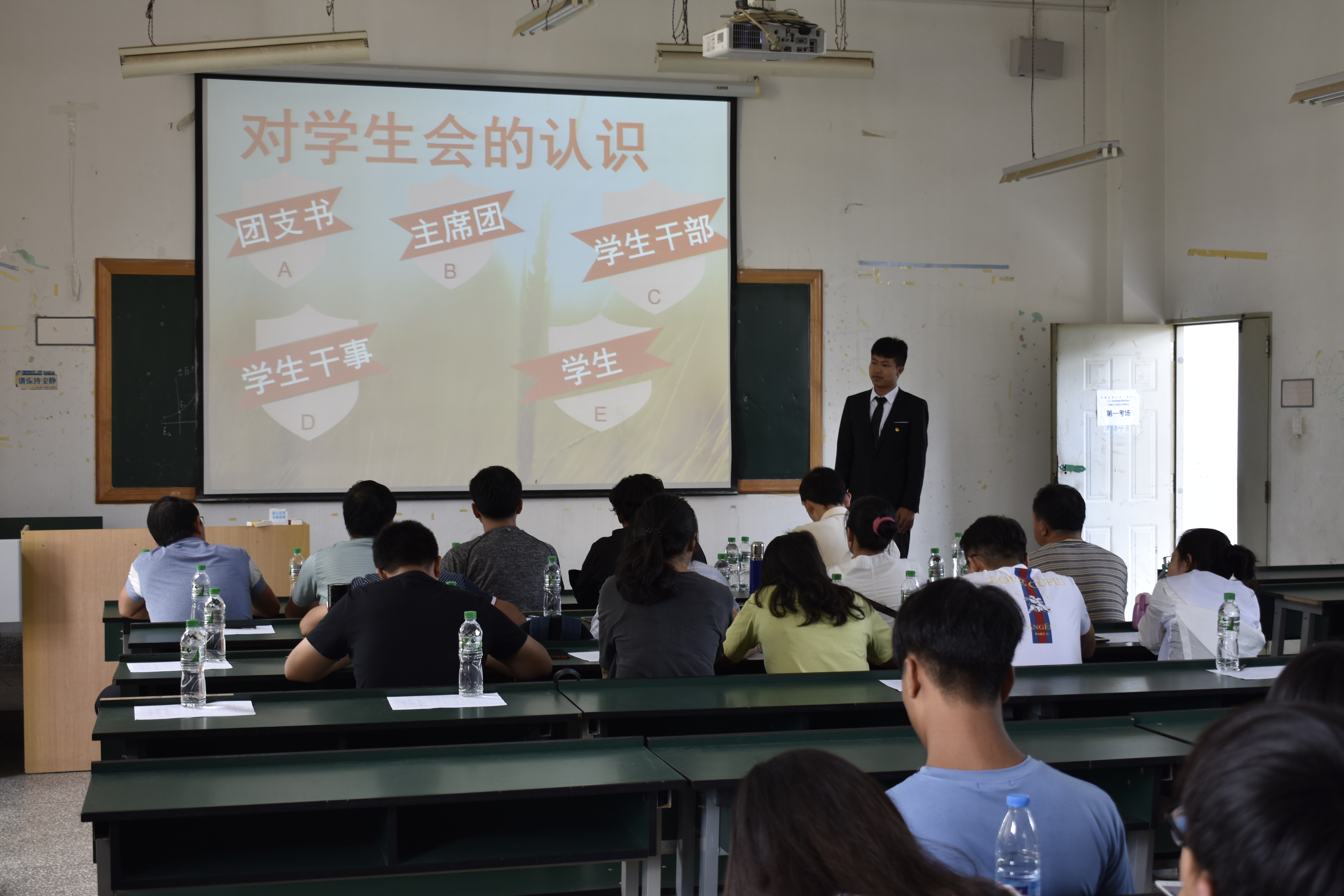第一轮笔试环节于2019年6月11日在经开校区图科楼101和104进行,学工办(负责人)及团总支书记杨寿鑫老师、辅导员霍冬芳老师主持开展。