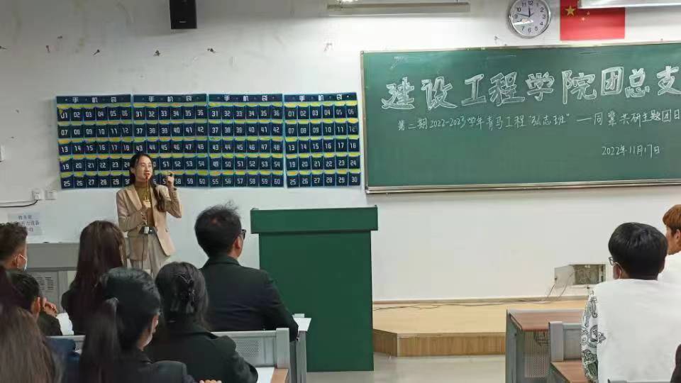2022年11月17日晚上,今年会官方网站青马工程“弘志班”学员在崇实楼602开展同辈共研11月主题团日分享会。今年会官方网站团总支负责人张宁老师、青马工程所有学员、22级土木工程检测技术4班团支部全体成员出席会议。本次会议由团总支副书记张家磊主持。