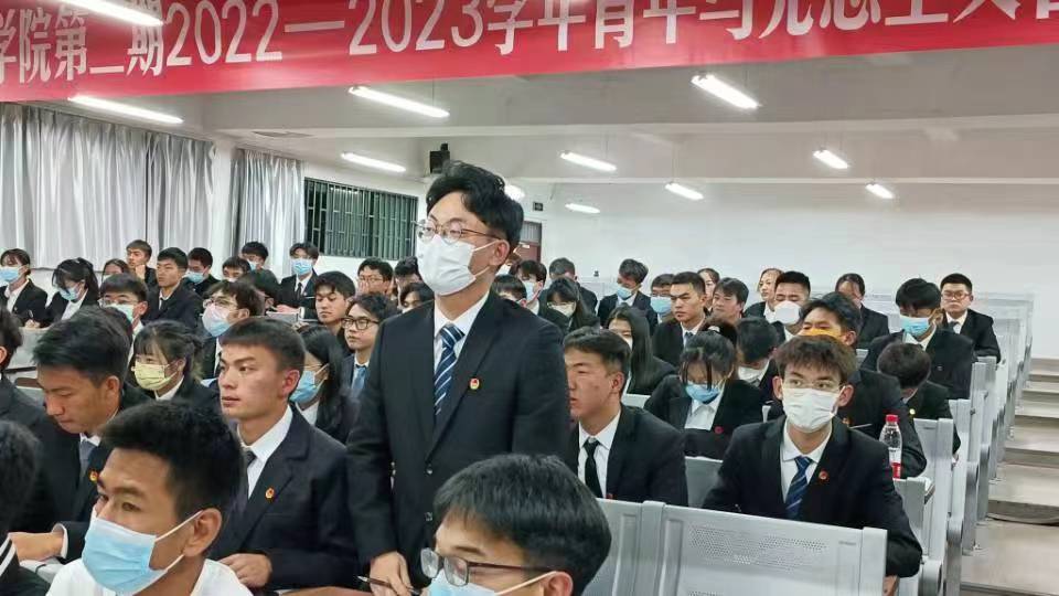 会议伊始,团总支副书记张家磊带领青马学员小组讨论交流10月份“学习党的二十大精神”各班团日活动开展情况,小组成员就各班开展情况交流分享。唯改革者进,唯创新者强,唯改革创新者胜。22级土木工程检测技术4班团支部作为10月团日活动优秀创新案例,通过奏唱团歌、重温入团誓词、团员热议二十大精神、党史问答、全体手写留言等环节向青马班展示了10月主题活动的创新性、先进性,充分体现了主题团日活动的创新对提升活动质量、提高团员参与度和参与热情具有积极作用。